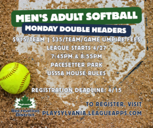 Come play with us this Fall! Get your team together and come play at the area’s best kept facility, Pacesetter Park. Whether you are an avid softball player, recreational level player or someone just looking to get back into it and have some fun, we have a league for you. Space is limited in all of our leagues, so register early so that your team doesn’t get closed out. League champs receive quality awards.
