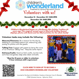 Children’s Wonderland began as a Northwest Ohio holiday tradition over 60 years ago. On Friday, December 12 the display opens at Sylvania’s Tam-O-Shanter and will run through Dec. 24, 2025. As always, dozens of classic exhibits will be on display, train rides will be available, and there will be plenty of opportunities to take pictures with Santa!
