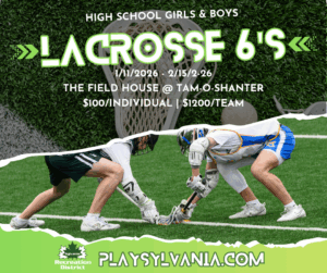 Equipment Needed: Boys’ lacrosse stick, elbow pads, shoulder pads, gloves, protective cup, mouthguard. Sylvania Recreation can provide helmet.