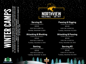 The Northview Winter Volleyball Camp series is intended for girls of all ability levels who are interested in learning what it takes to play better volleyball. The Northview High School Coaches and Players will instruct the camps. During these camps, children will be given an opportunity to work on core fundamentals of specialized skill sets that it takes to play the game more effectively.